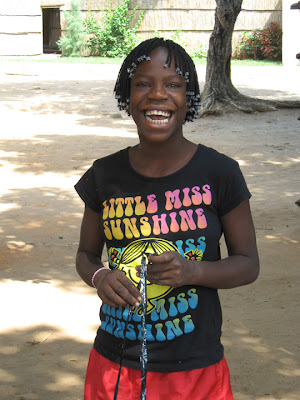 My second encounter with the kids happened at church that night. Church and the kitchen are the same building. It is a long open building with tables in one half and benches facing a stage in the other half. Church was also quite different but a little easier to adjust too. Again they sat the kids by age and gender. I think they sat them down by dorm with their dorm parent there to watch them. I went and sat with the girls and pretty soon worship started. It started a lot like a western service with us all standing in rows singing and they even had a projector so we could sing along. But after just a couple of songs they said we could all come forward and they did the more traditional worship with lots of dancing. Because they didn't have anybody up front leading the dancing, little groups just started doing their own thing, so it was harder to join in and hard to focus on singing but it was a lot of fun. Then they had groups of kids come up and do songs or dances. Then a short message was given; it was not translated and only lasted about 10 minutes. Then worship started again and people started leaving. I stayed for a little bit but left when the majority of the people left. We could hear the worship band playing for at least another hour. I asked if this was normal and was told the band liked to play so they would keep going for a long time even if everyone had left.